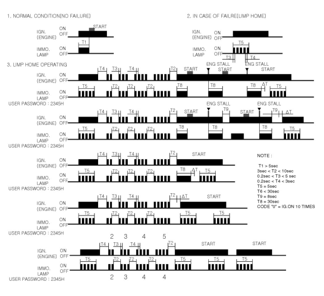 If the PCM(ECM) detects the fault of the SMARTRA or transponder, the PCM(ECM) will allow limp home function of the immobilizer. Limp home is only possible if the user password (4 digits) has been given to the PCM(ECM) before. This password can be selected by the vehicle owner and is programmed at the service station.