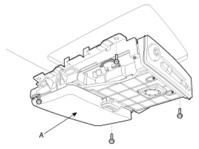 2. Remove the DVD rear monitor cover (A) and disconnect the interior lamp connector.