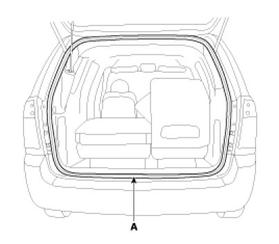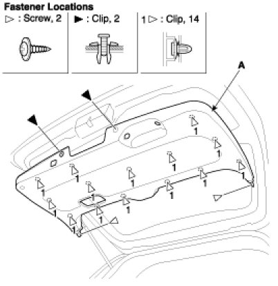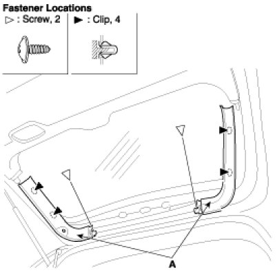 7. Loosen the screws and clips to the lower tailgate trim (A).