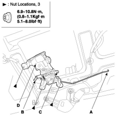 3. After loosening the mounting bolt and nuts, then remove the actuator assembly (D).