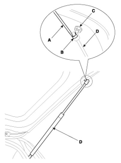 2. Disconnect the clip (A), remove the tailgate lifter (B).