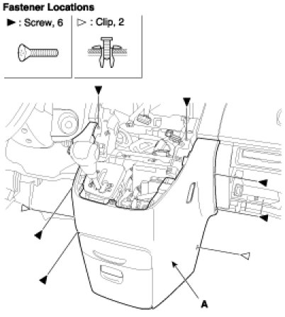 3. After loosening the console mounting screw, remove the front console (A).