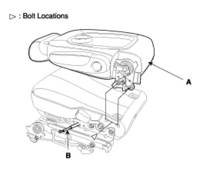 3. Loosen the mounting bolts, then remove the seat back assembly (A).