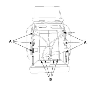 3. Disconnect the auto tumble cable(B).