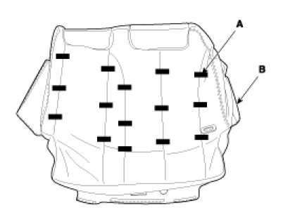 6. After removing the hog-ring clips (A) on the front of seat back remove the seat back cover (B).