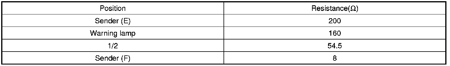1. Using an ohmmeter, measure the resistance between terminals 1 and 2 of sender connector (A) at each float level.