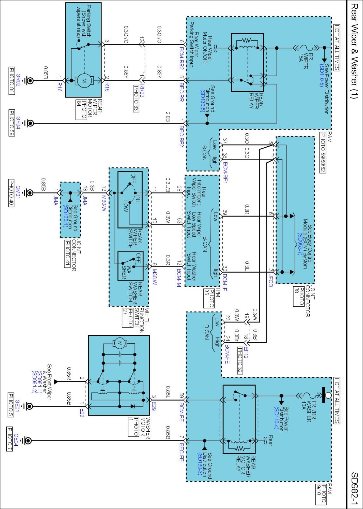 Diagram Set SD982 (Rear Wiper & Washer)