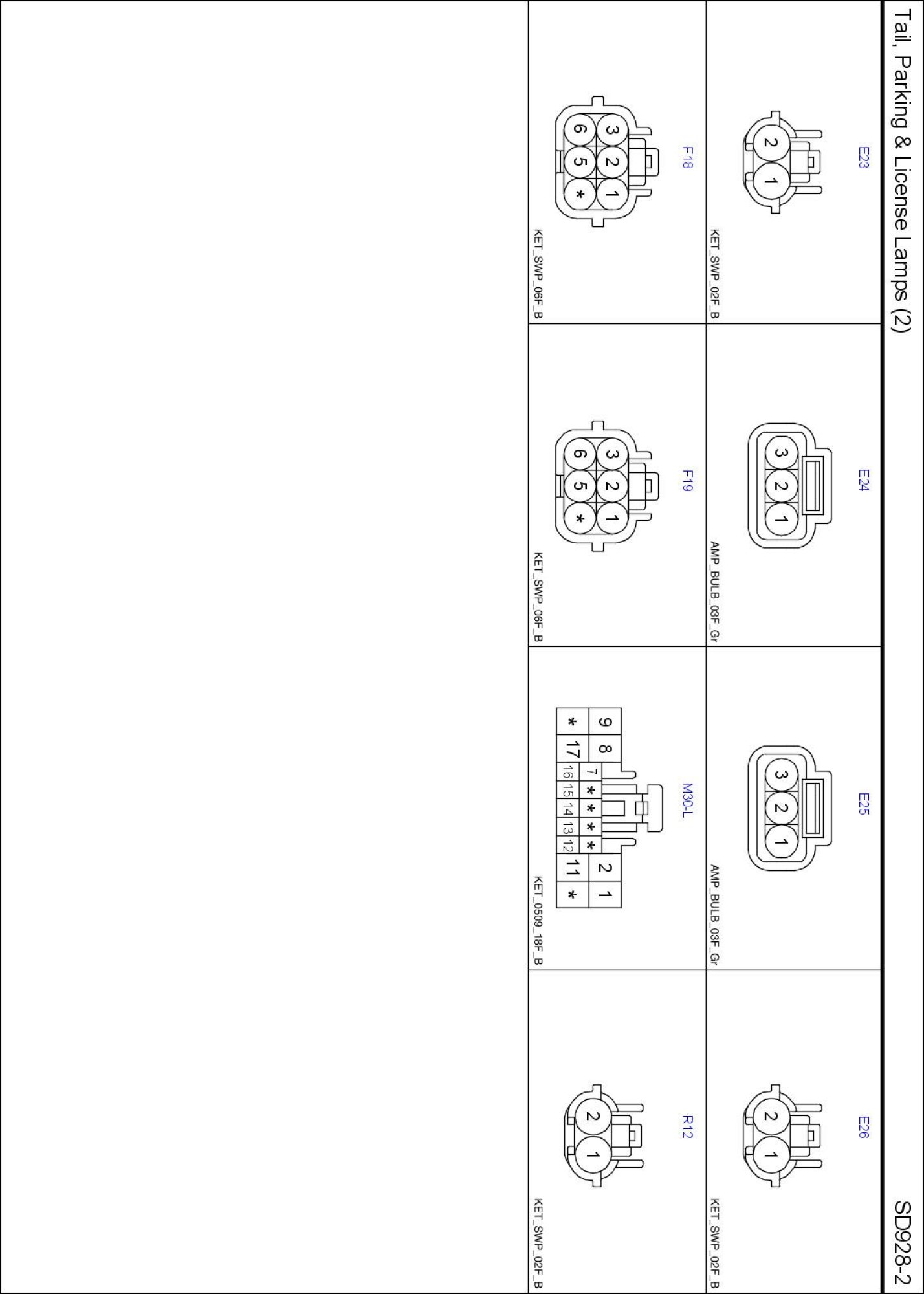 Tail, Parking And License Lamps (2) Connector Pin Outs: