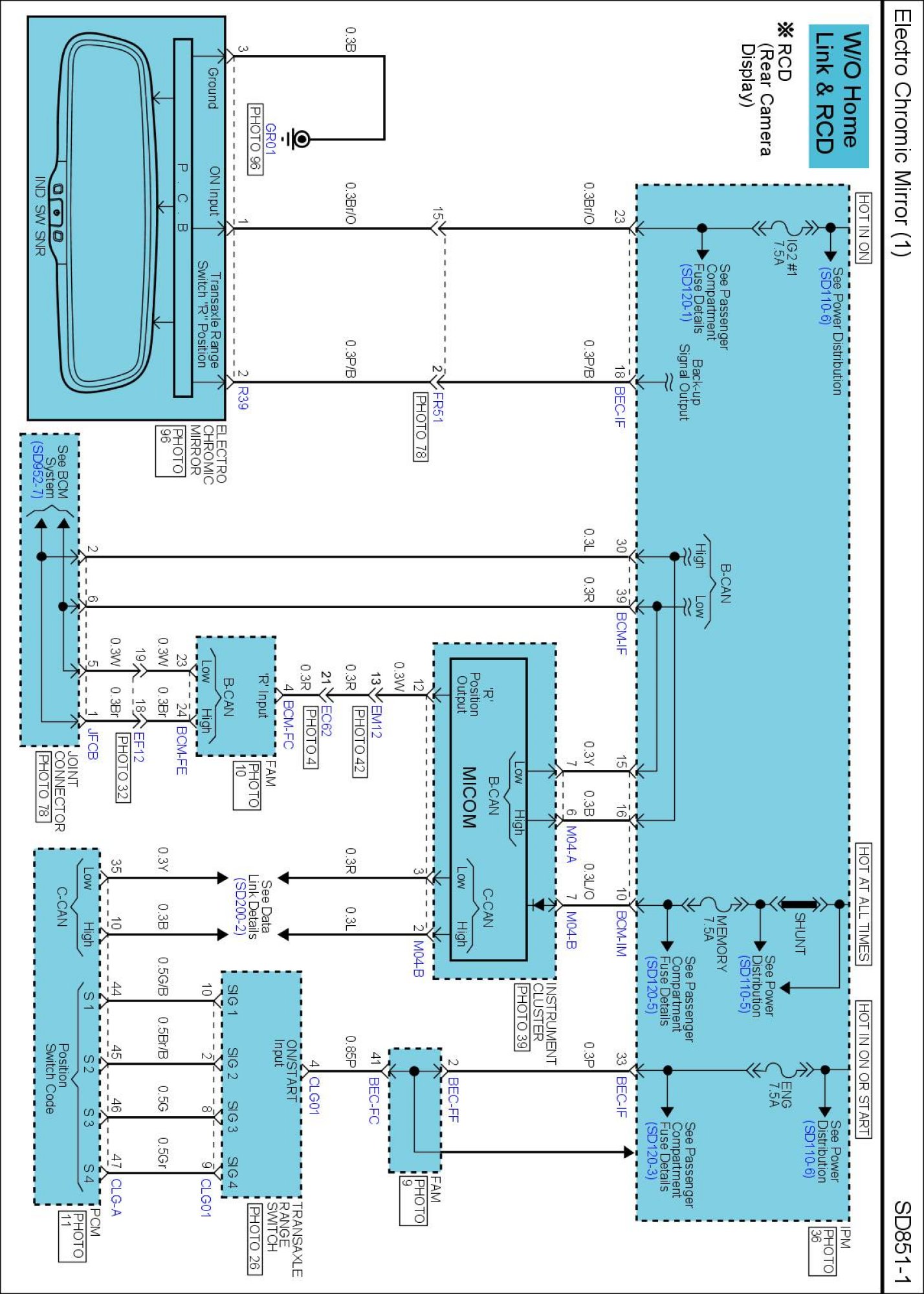 Electro Chromic Mirror (4) Connector Pin Outs: