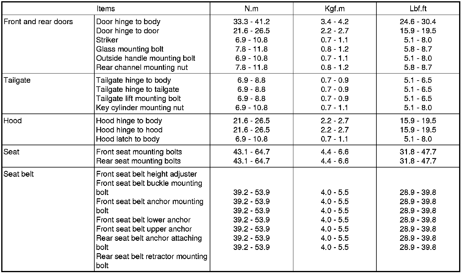TIGHTENING TORQUE