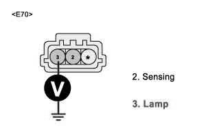 2. Measure voltage value between terminal "C02" of alternator and "+" terminal of battery.