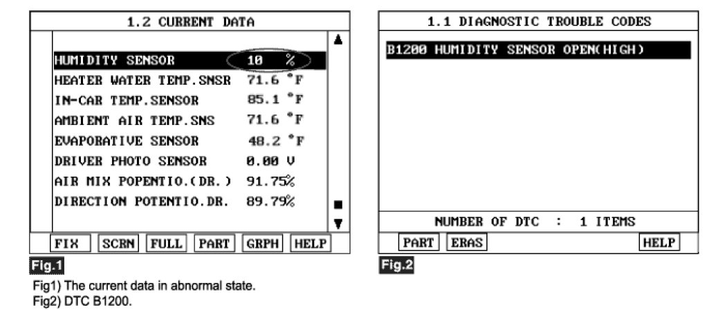 4. Are the DTC B1200 present and is parameter of "Humidity Sensor" fixed?