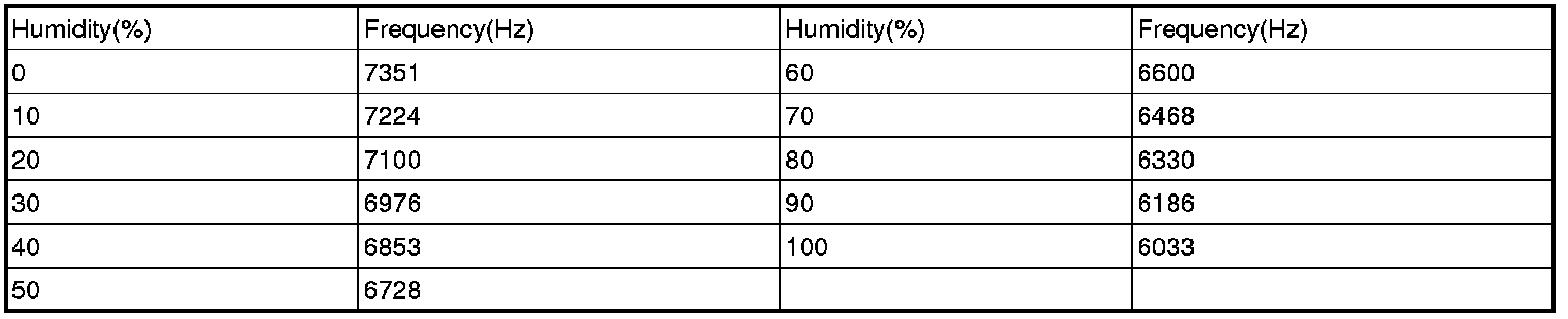 ** Frequency value of humidity sensor as a function of humidity.