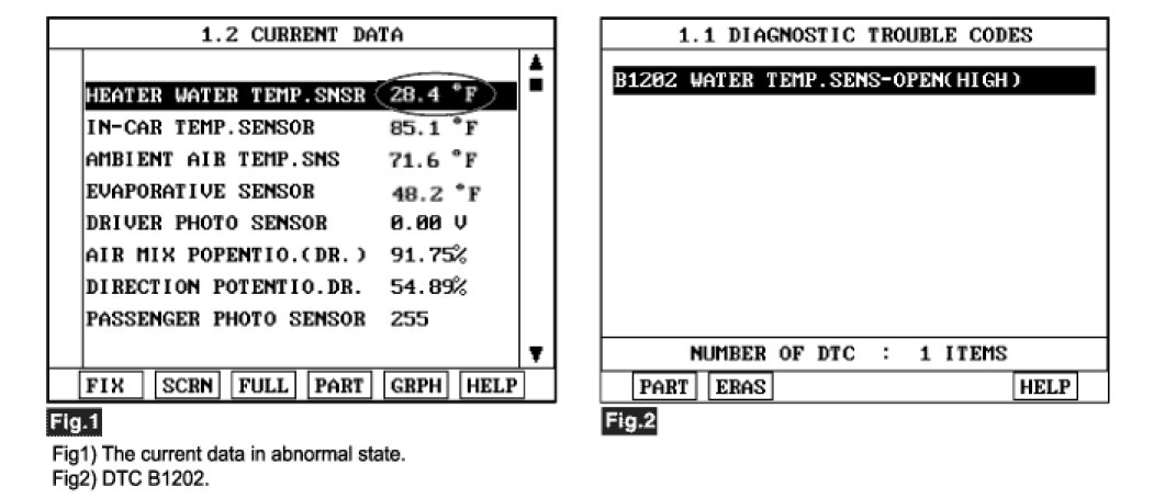 4. Are the DTC B1202 present and is parameter of "WATER TEMP SENSOR" fixed?