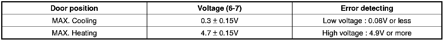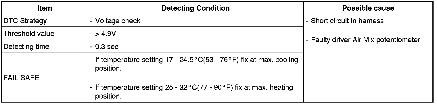 ** Parameter of "Passenger's Air Mix potentiometer" will be fixed at 100%(or any value above 90%), or 0% (or any value below 10%), if there is any fault in Passenger's Air Mix potentiometer.