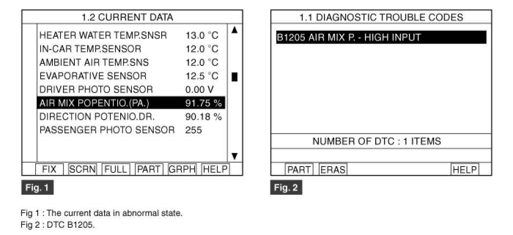 4. Are the DTC B1205 present and is parameter of "Passenger's Air Mix potentiometer" fixed?
