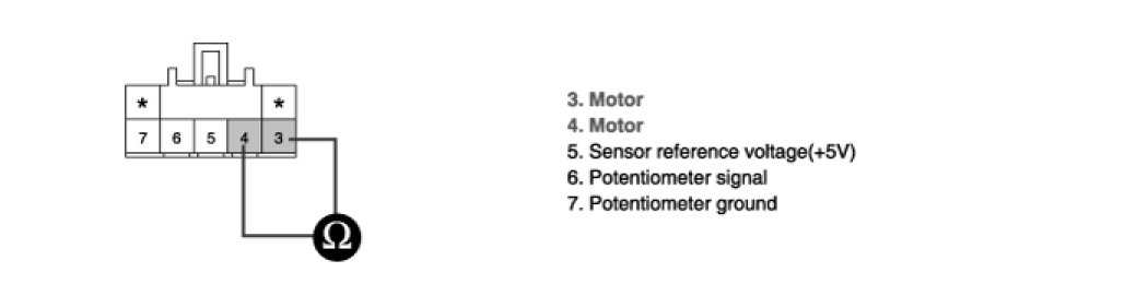 (3) Verify that the temperature actuator operates to the hot position when connecting 12V to the terminal "3" and grounding terminal "4".