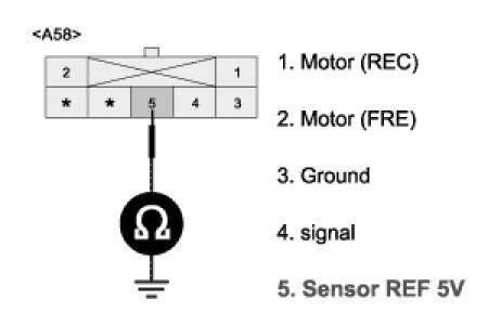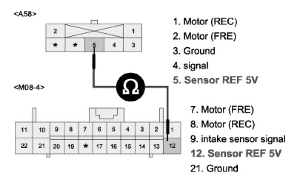 3. Measure resistance between terminal "5" of Intake actuator and terminal "12" of A/C Control Unit