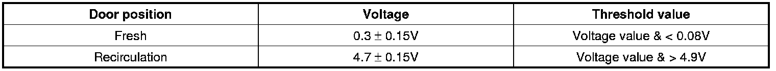 Intake door located at heater unit controls the inlet of car. When driver operates the intake switch, A/C controller recirculation gives mode signal from intake switch and operates intake door actuator to turn intake door to intended position. (with fresh mode signal, intake door is closed and with fresh mode signal, intake door is opened).