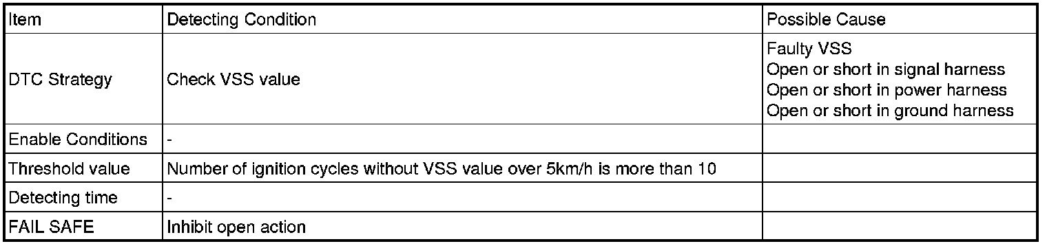 The ECM sets DTC B1223 if number of ignition cycles without VSS value over 5 km/h is greater than 10.