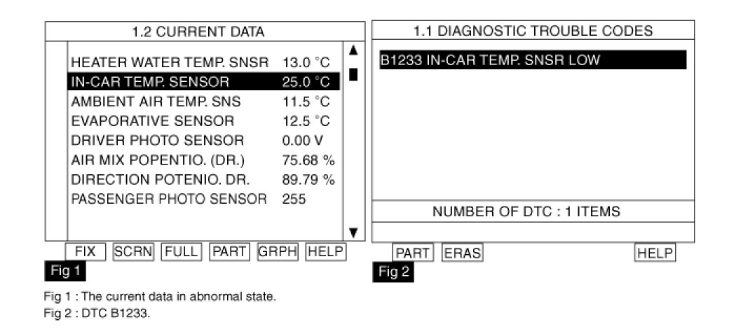 4. Are the DTC B1233 present and is parameter of "INCAR TEMP. SENSOR" fixed?