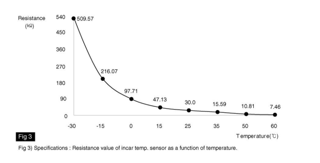 The incar temperature sensor located at crush pad, control unit contains a thermistor which measures the temperature of the inside. The signal, decided by the resistance value which changes in accordance with perceived inside temperature, is delivered to heater control unit and according to this signal, the control unit regulates incar temperature to intended value.