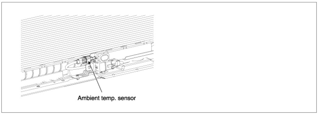 The ambient temperature senor located at the center stay of the condenser, detects ambient air temperature. It is a negative type thermistor whose resistance is inversely proportional to temperature. Its output is used for discharge temperature sensor, sensor fail-safe, temperature regulation door lock, blower motor level control, mix mode control and in-car humidity control.