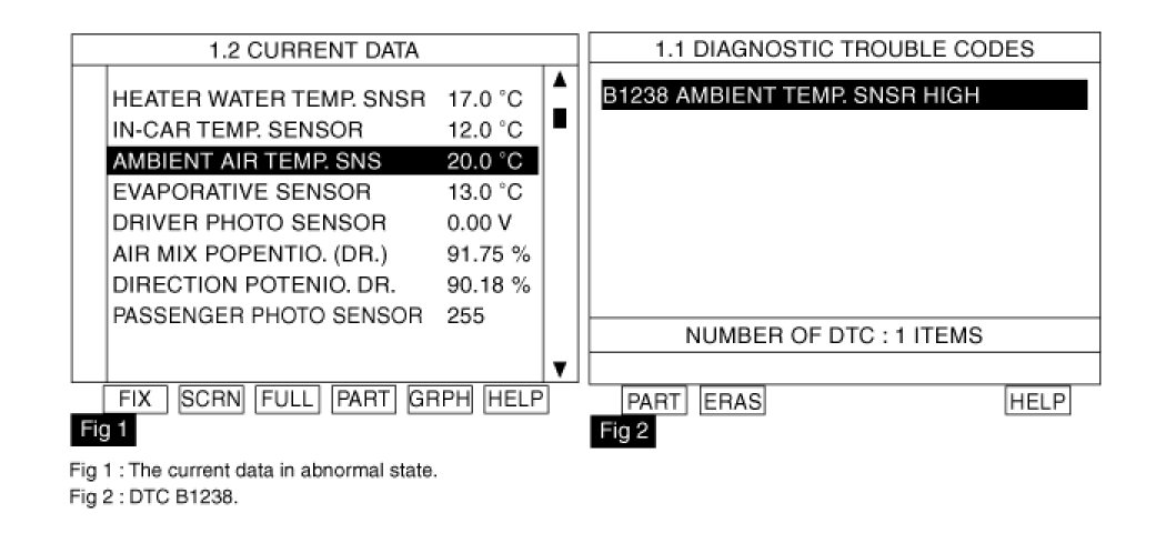 4. Are the DTC B1238 present and is parameter of "AMBIENT TEMP. SENSOR" fixed?