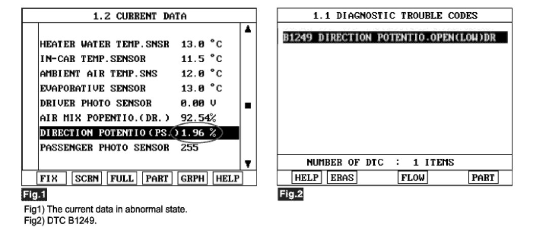 4. Are the DTC B1249 present and is parameter of "DR DIRECTION POTENTIO" fixed?
