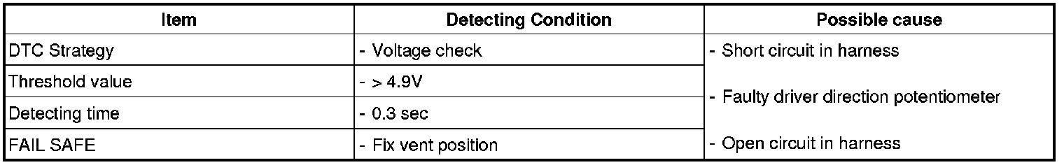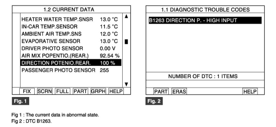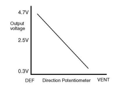 The A/C controller sets DTC B1263 if there is a short to power in the Direction potentiometer.