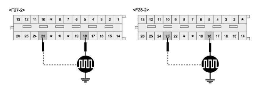 3. Measure waveform between terminal "F28-2-18,23, F27-2-18,23" of optical sensor and chassis ground. While pushing PSD close switch.