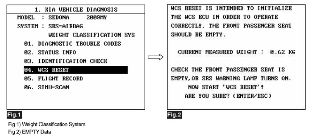 2. Ignition "ON" & Engine "OFF", select Weight Classification System and select "WCS Reset" mode.