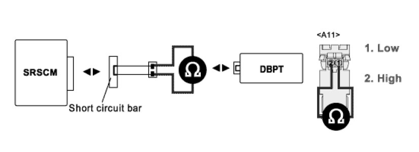 3. Disconnect DBPT module and connect the dummy (0957A-38200) and dummy adapter (0957A-1C000) to main harness connector.