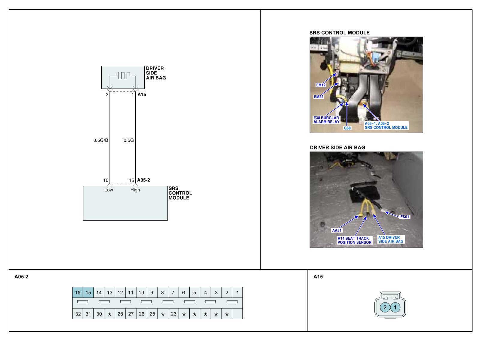 B1381 Side airbag front-Driver resistance circuit short to Battery