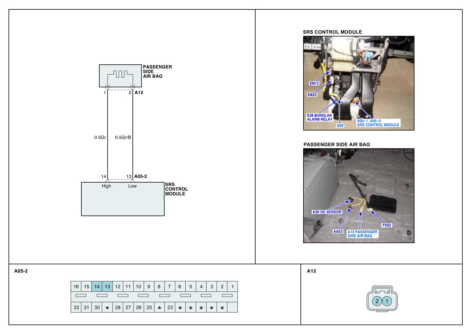 The SRSCM sets DTC B1382 if the measured resistance value of PSAB circuit is more than the threshold value.