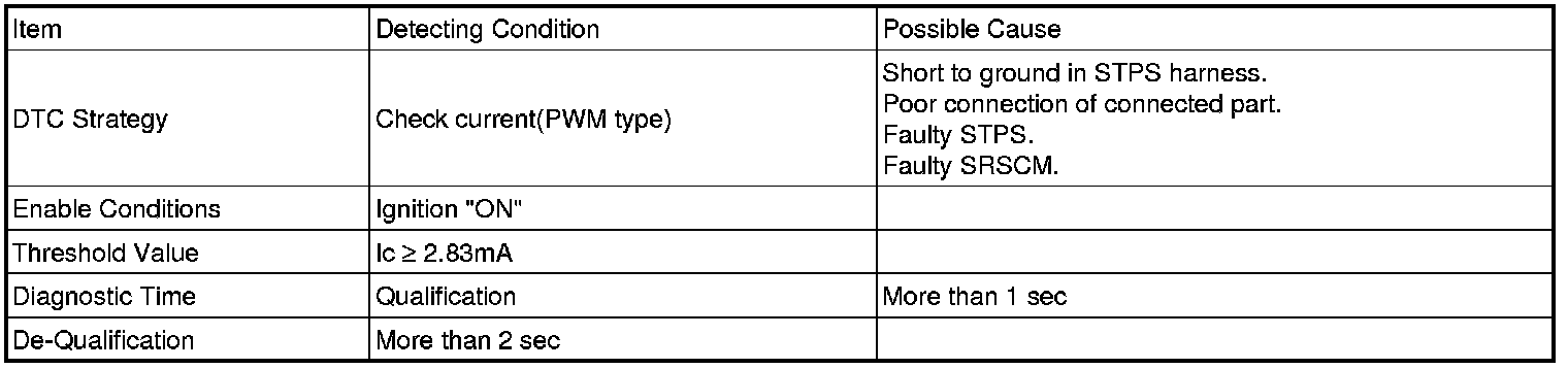 The SRSCM sets DTC B1387 if there is a short to ground in Driver STPS harness.
