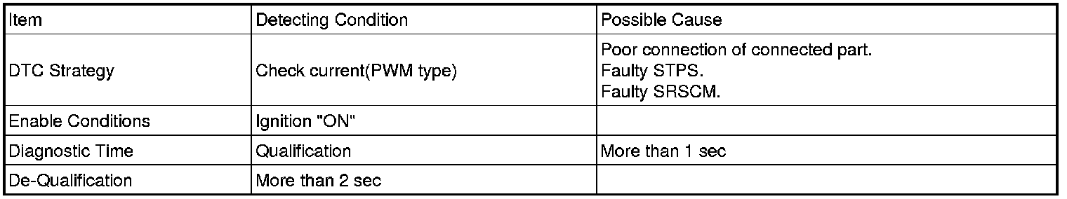 The SRSCM sets DTC B1389 if there is any fault in STPS circuit.