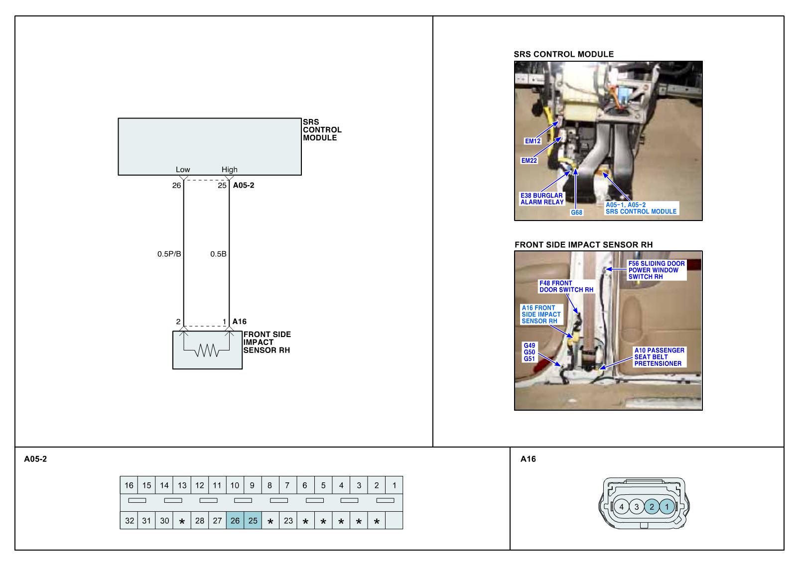 Side Impact Sensor (SIS) is located in both side of center pillar detects broad collision. When SIS delivers collision signal to SRSCM, SRSCM checks if safing sensor located in SRSCM detects collision. and if both SIS and safing sensor detects collision simultaneously, SRSCM operates side air bag.