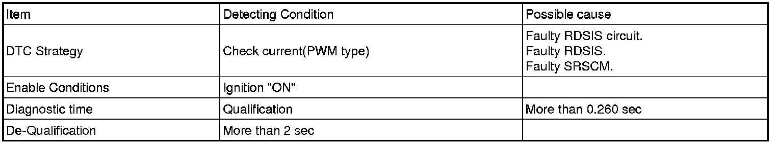The SRSCM sets DTC B1412 if there is any error in communication between RDSIS and SRSCM.