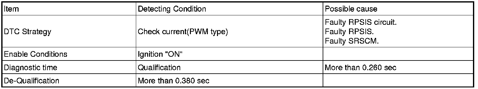 The SRSCM sets DTC B1419 if there is any fault in RPSIS circuit.