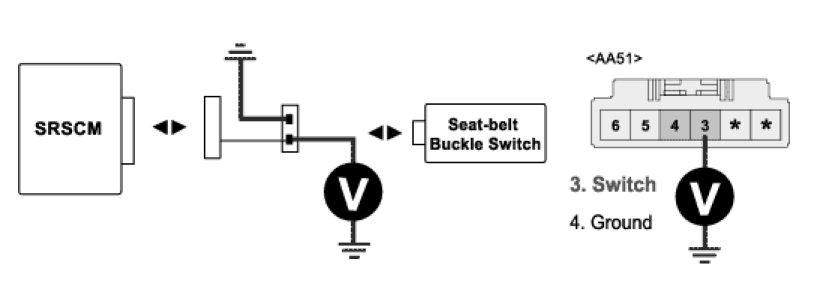 5. Measure voltage between terminal "3" of the Seat-belt Buckle Switch harness connector and chassis ground.