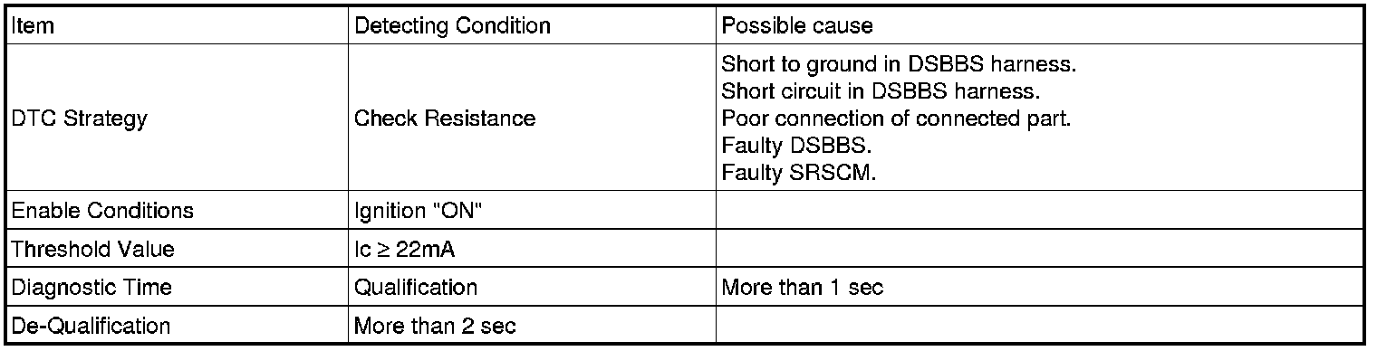 The SRSCM sets DTC B1512 if there is a short or short to ground in DSBBS harness.