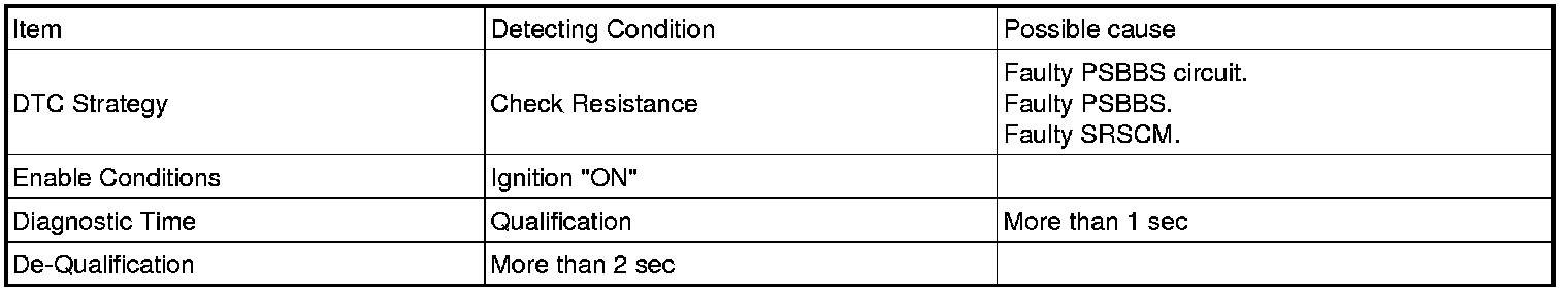 The SRSCM sets DTC B1516 if there is any fault in PSBBS circuit.