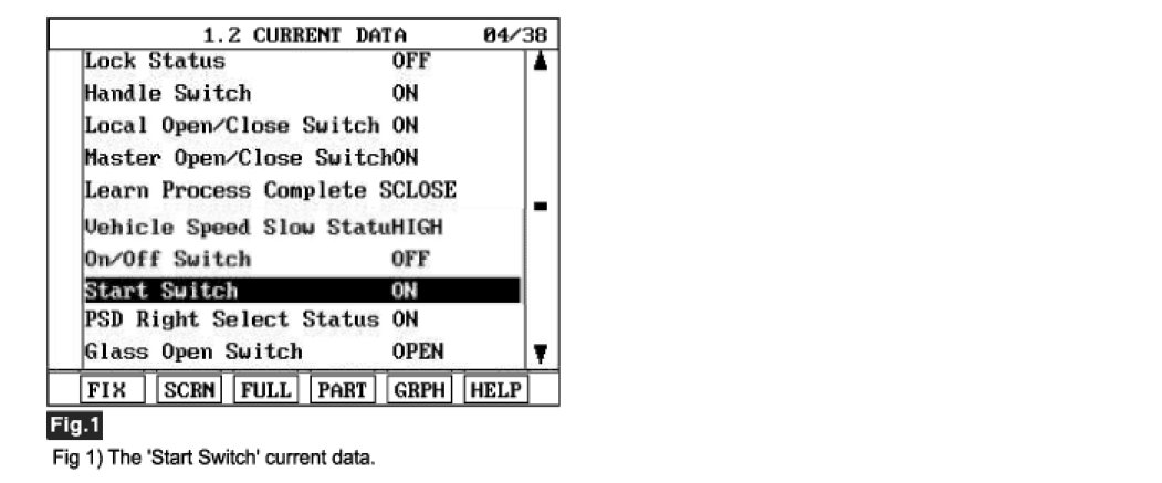 3. Monitor the "start switch" Parameter on the Scantool. While positioning key "IGN START" position.