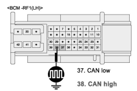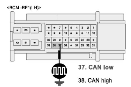 (3) Measure waveform between terminal "BCM-RF1-37" of RAM and chassis ground.