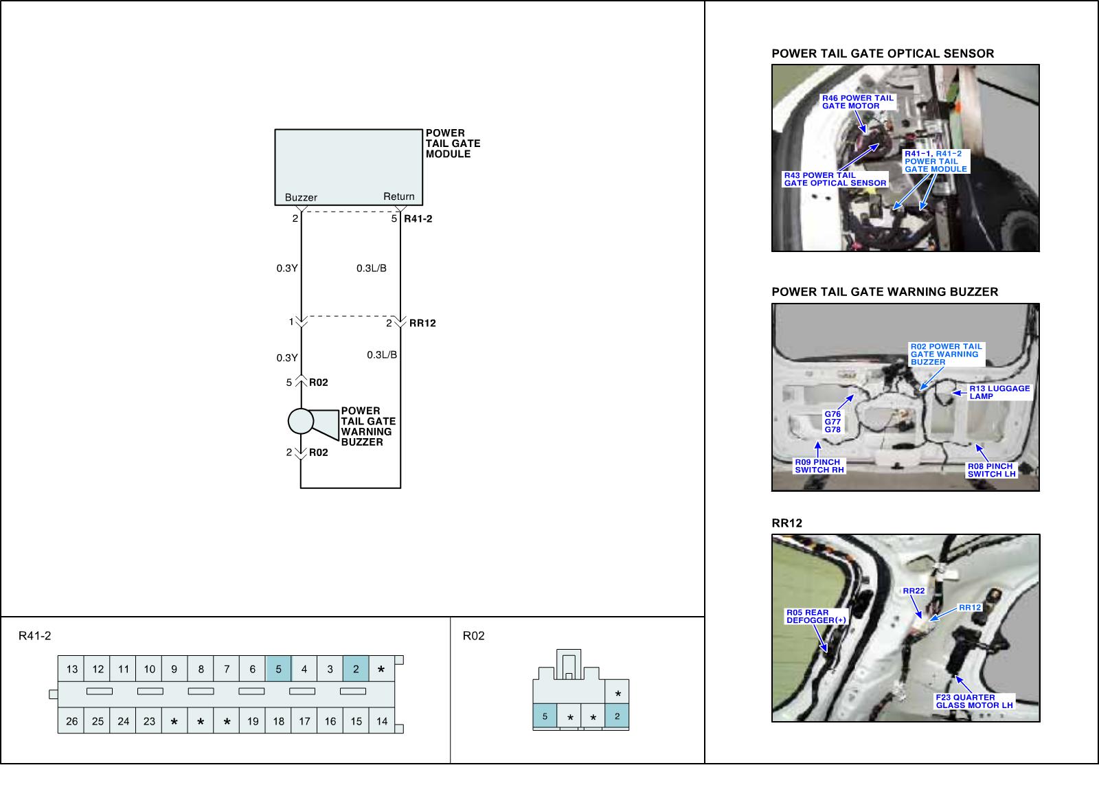 Power Tail Gate (here in after PTG) is the system which moves tail gate of vehicle by electronic motor so that user can open or close door with less force than required on manual operation. PTG ECU operates chime if there any problem in power gate operation, chime buzzer is located at lower part of tail gate. Chime & tail lamp shall operate prior to and during power opening or closing the Tailgate (3 Times :0.5 sec on, 0.5 sec off), after 1 chime start opening or closing with two chimes) and it also operate when a power operation cannot be performed as requested except handle pull (1 Time : Duration 0.5 second on) or an obstacle has been detected or PTG has not reached primary latch position after a power cinch cycle (3 Times : 0.5 sec on, 0.5 sec off) or the PTG is not in primary latch position and the vehicle is moving (Continuous : 30 seconds)