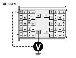 3. Measure voltage value between terminal "BEC-RF1-8,40" of FAM and chassis ground.
