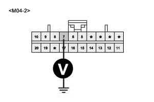 3. Measure voltage value between terminal "M04-2-7" of Cluster module and chassis ground.