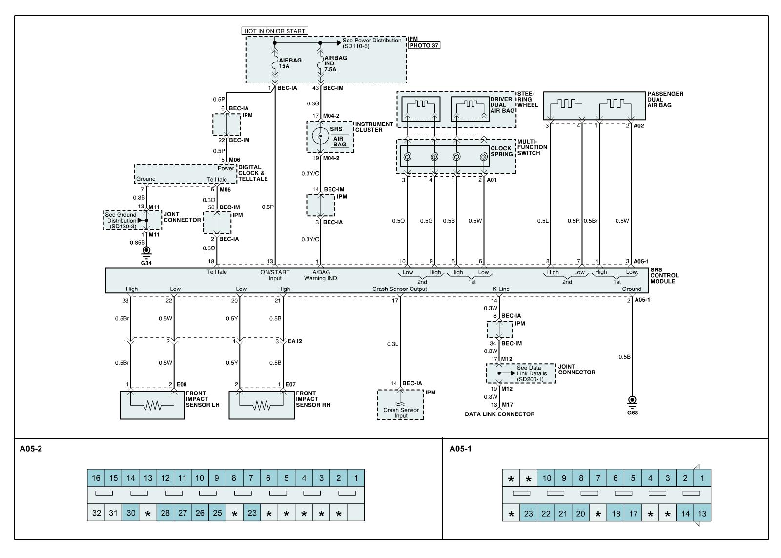 In collision, SRSCM sends current to pertinent air bag for deployment. Besides SRSCM performs diagnosis of overall air bag system and light warning lamp if there's any fault in it. Main functions of SRSCM are as follows.