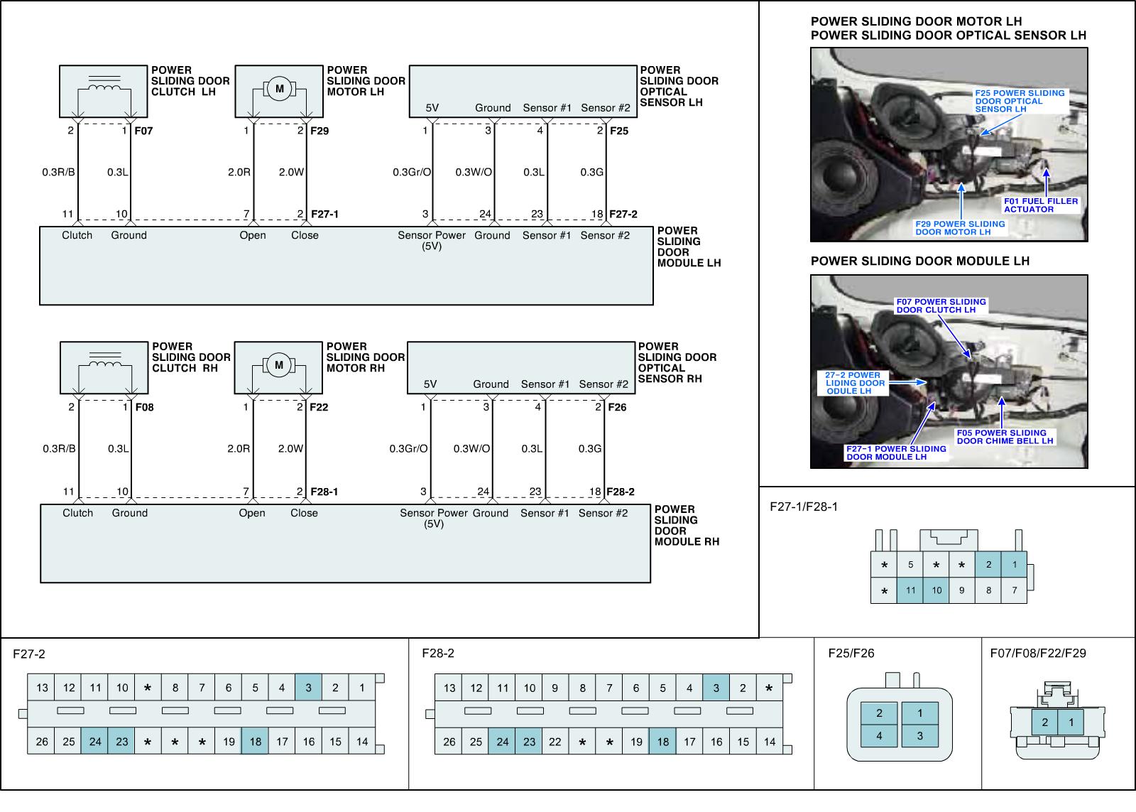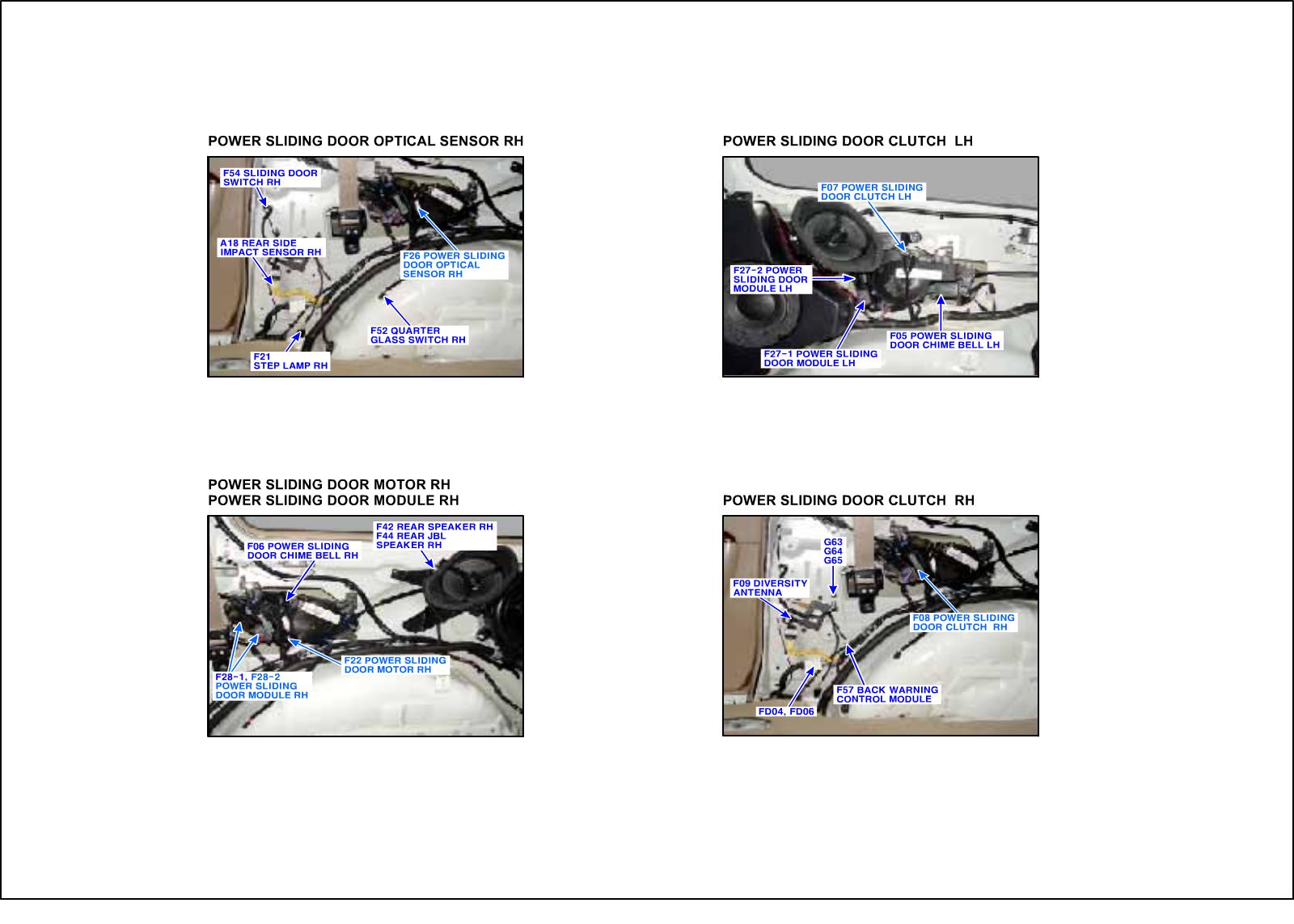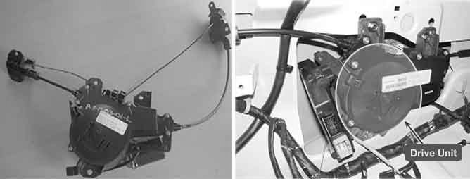 Power sliding door (here in after PSD) is the system which moves sliding door of vehicle by electronic motor so that user can open or close door with less force than required on manual operation. PSD consists of drive unit, center roller/rail, handle and various kinds of switch (anti pinch, detent, latch), Drive unit is located at rear quarter panel that is between C pillar and D pillar. It is core part of PSD that drives cable by force of motor to move sliding door. beside that Drive unit consists of PSD ECU, door motor, clutch, optical sensor, cable and warning buzzer. When power door open signal is received, PSD ECU operates motor of drive unit and clutch transmits it to cable through clutch drum. then cable moves door. Optical sensor monitors these system operation and delivers it to PSD ECU.